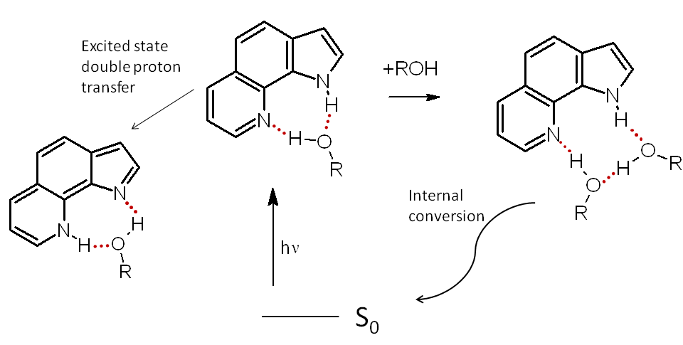 2. Extremely efficient internal conversion due to multiple hydrogen bonds